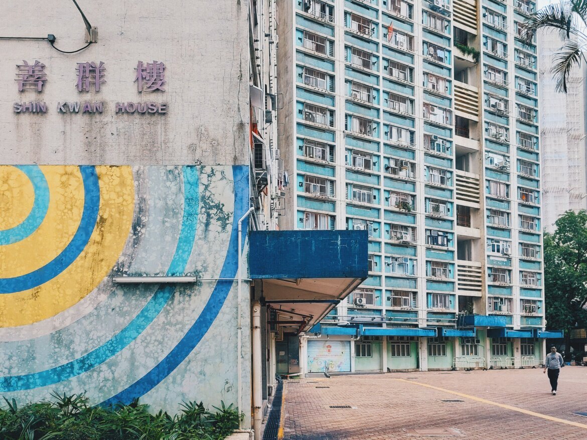 更意想不到的是,富善邨大廈地下牆身更有粉飾過,繪畫成幾何或山形等七彩繽紛的圖案,讓人感覺到住的人也很有心思打理及美化自己居住的地方。