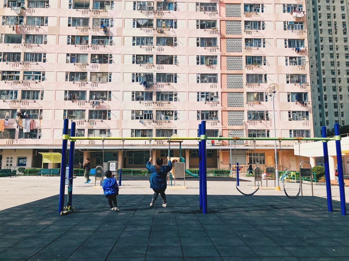 遊走漁灣邨時,發現樓宇分別為樓高7層以及22層的舊式長型大廈(漁進樓於2020年落成,是例外),樓宇高低相連亦是舊長型大廈的特色之一。個人就頗喜歡這種設計,高低錯落的樓宇讓人看得舒適,不會如近年的樓宇般如此密集和有壓迫感,而且樓宇之間有個極為寬闊的公共空間,當中包遊樂場及健體區,即使被樓宇包圍,也不會有壓迫感。